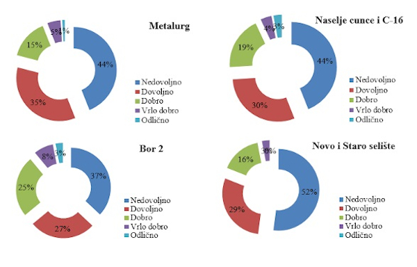 Veliki procenat građana Bora je infrastrukturi za ranjive učesnike u saobraćaju (pešaci, starija lica, osobe sa invaliditetom, biciklisti...) dao loše ocene. Rezultati Istraživanja pokazuju da se niske ocene infrastrukturne ponude grada Bora, oslikavaju i na pojedinačna naselja u gradu, gde se u značajnom procentu izdvaja ocena kao što je nedovoljna.