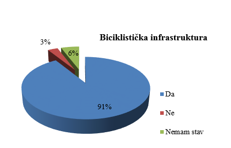 U celokupnom uzorku, svega 3% ispitanika koristi bicikl kao svakodnevni vid prevoza. Razlog ovome može biti i činjenica da u Boru ne postoje biciklističke staze/trake, gde 91% ispitanika smatra da je Boru potrebna biciklistička infrastruktura.