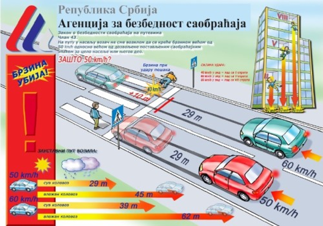 Pri brzini od 50 km/h smrtno strada 40% pešaka;