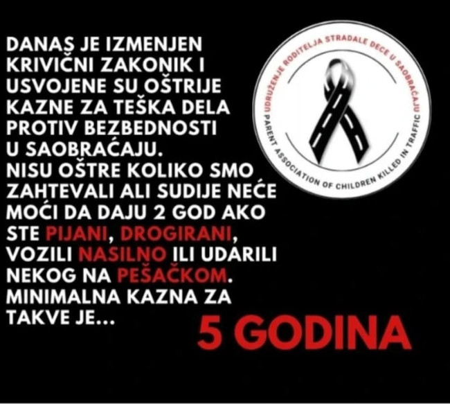 Pooštravanje kazni zatvora za ovo krivično delo inicirali su predstavnici Udruženja roditelja dece stradale u saobraćaju.