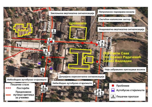 Problem 5. U delu ulice „Nikole Pašića“ koji pripada zoni O.Š. „Branko Radičević“ i O.Š. „Sveti Sava“ nije zabranjeno preticanje vozila što je posebno opasno u prisustvu dece na kolovozu.