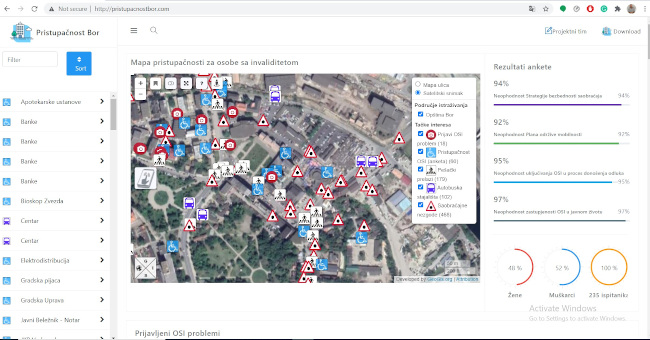 Strukovno udruženje za saobraćajno i urbanističko planiranje Sigurne staze” iz Bora pokrenulo je mobilnu i web aplikaciju “ „Pristupačnost - Bor” za osobe sa invaliditetom na teritoriji grada Bora.