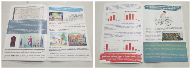 U brošuri su predstavljene i funkcionalnosti prve GIS platforme za bicikliste u R. Srbiji (www.bicibor.rs), kao i set mera i predloga kako unaprediti biciklistički saobraćaj na teritorij grada Bora.